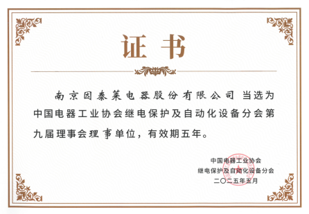 南京因泰萊當(dāng)選為中國電器工業(yè)協(xié)會繼電保護(hù)及自動化設(shè)備分會第九屆理事會理事單位